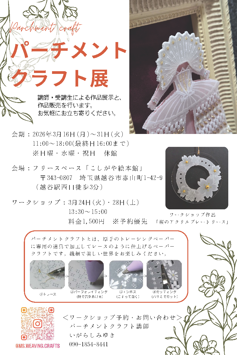 講師:五十嵐 美友紀 パーチメントクラフト作品展・ワークショップ・作品販売